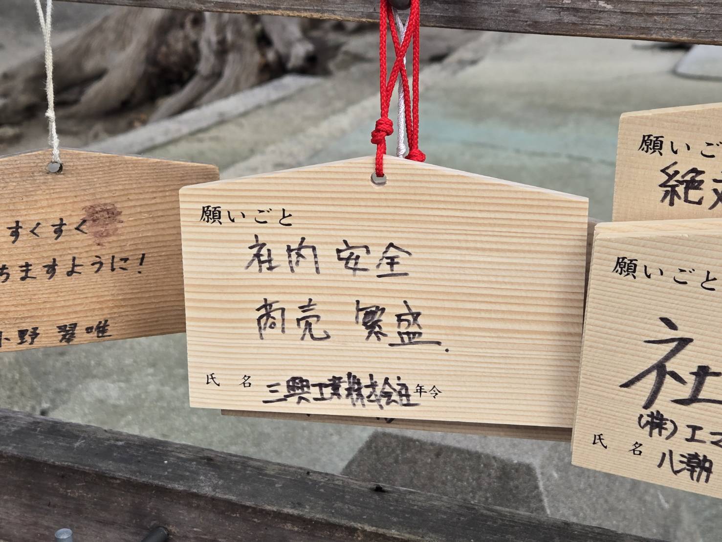 仕事始めには、幹部メンバーで産須那神社へ安全祈願に行き