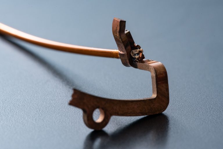 また電気抵抗が小さいため通電時に電流が広範囲に流れて集中しづらく、通常のスポット溶接機では十分な溶融核(ナゲット)を形成できず接合強度が不足しがちです。さらに銅は高温で酸化膜が生じやすく(約300℃以上で酸化銅皮膜形成)、これが溶接部に混入すると気孔や脆弱性の原因となります